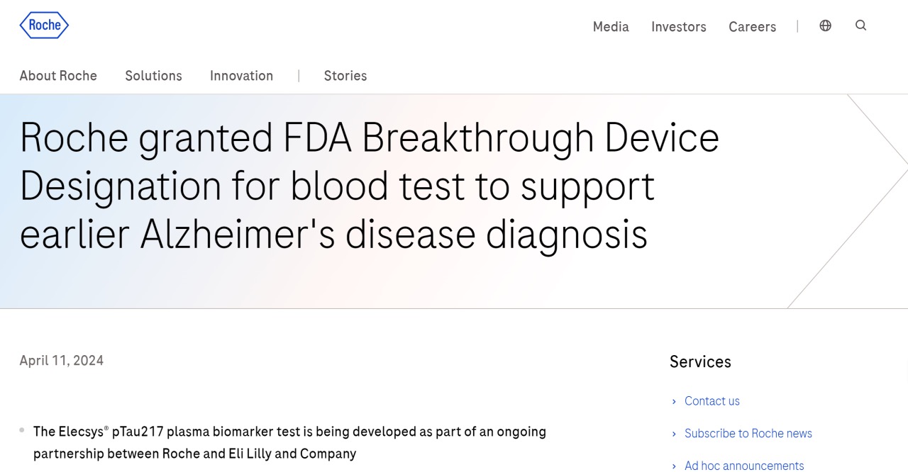 Roche receives FDA Breakthrough Device Designation. Why is pTau-217 is becoming a hot biomarker for Alzheimer’s Disease?